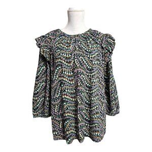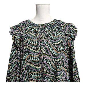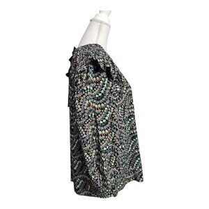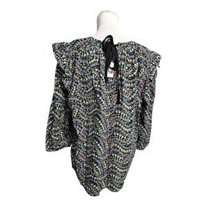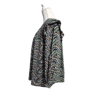 LOFT Garden Dobby Tie Back Ruffle Blouse XL Black Calico Floral