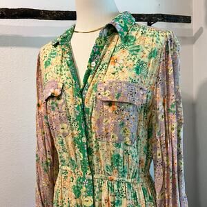 LOFT Garden Party Long Sleeve Patchwork Floral Button Front Dress Size Medium