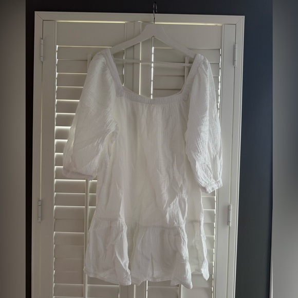 Excellent condition. Absolutely adorable. Gauze vibe. Mirrored square neck detail. Ruffle skirt. Just a smidge big on me now, sad to give this one up. 🤍