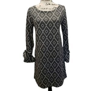 Perfect for winter or fall grey and white pattern size small very flattering long sleeve with bell end and ties. Very cute like new condition no damage or stains could fit a size medium as well