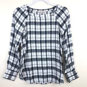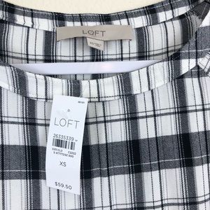 LOFT Women's Black White Gingham Check Lightweight Blouse Top