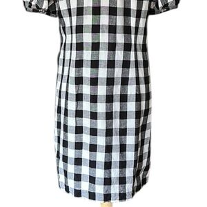 LOFT Gingham Linen Blend Button Up Dress Black White Preppy Girly Casual Size 10