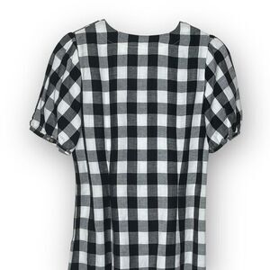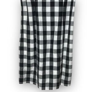 LOFT Gingham Plaid Linen Rayon Button Up Dress Black White V-Neck Women’s Size 2