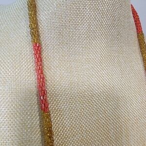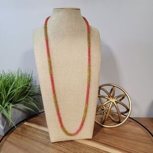 LOFT Gold Orange Seed Bead Rope Long Necklace