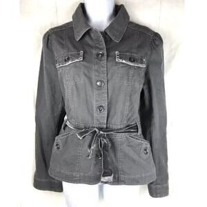 LOFT Gray Button Cotton Jacket Tie Waist Sz 8 Stretch