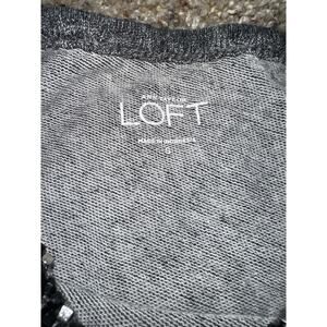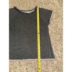 LOFT Gray French Terry Short Sleeve Top Small Beaded Embellished Neckline
