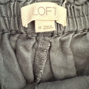 These LOFT gray joggers offer a relaxed fit with an elastic waistband for ultimate comfort. Made from a soft, lightweight fabric, they are perfect for casual wear. The subtle sheen adds a stylish touch to your everyday look.