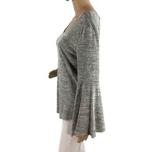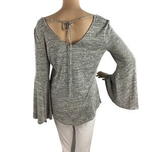 LOFT Gray Marled Bell Sleeve Tie Back Top S