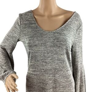 Tags: loft gray bell sleeve top, marled gray knit top, open back tie top loft, loft casual knit shirt, small size loft shirt, bell sleeve casual blouse, gray flare sleeve shirt