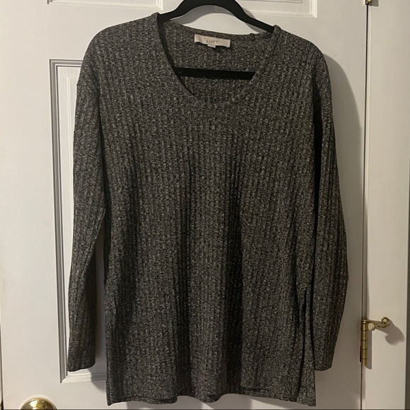 LOFT Gray Ribbed Sweater