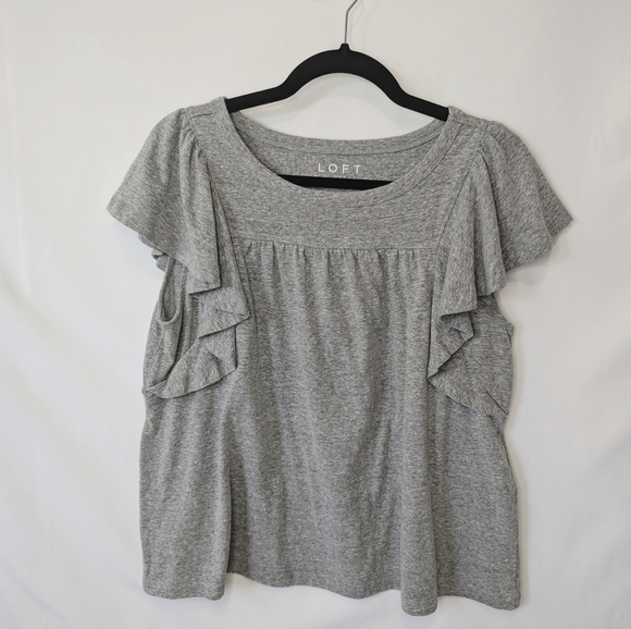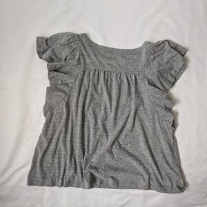 Chic gray top with ruffle sleeves. Soft fabric. Perfect for casual wear.