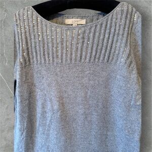 LOFT Gray Sequin Sparkle Ribbed Boat Neck Pullover Sweater