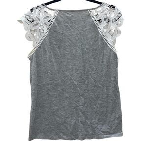 LOFT Gray Sleeveless Top Lace Flutter Sleeve Womens Medium Summer Minimalist