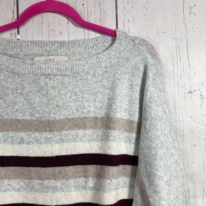 LOFT Gray Striped Crewneck Sweater Size S Cozy Minimalist Fall Knit Neutral