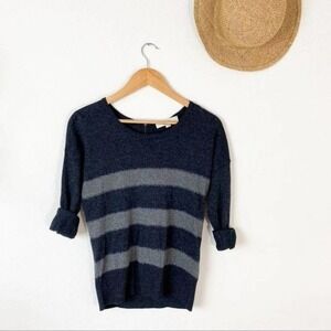 Gray Striped Sweater by LOFT. Metallic lines along the stripes add flare to this otherwise staple wardrobe piece. Zip closure at back. Cotton Blend.