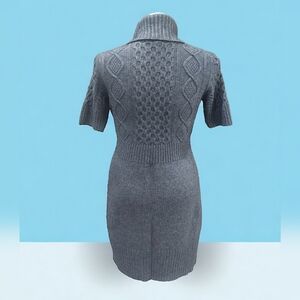 This LOFT sweater dress is a must-have for any fashion-forward woman. Made of a cozy blend of wool, cotton, nylon, rayon, and angora, it's perfect for winter and fall. The dress features a chic turtle neck and short sleeves, making it versatile for both casual and business occasions. Its A-line style and knee-length hem make it a great choice for any body type. The dress comes in a stylish gray color and has a solid pattern, making it a perfect addition to any wardrobe.