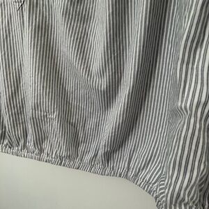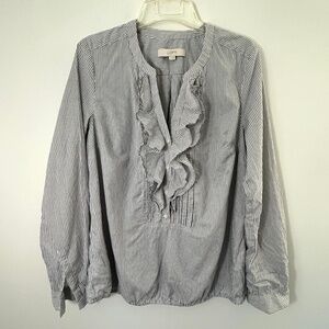 LOFT Gray & White Striped Ruffle Popover Blouse – Size Medium