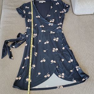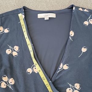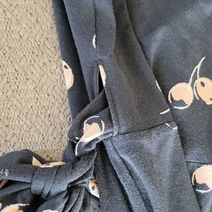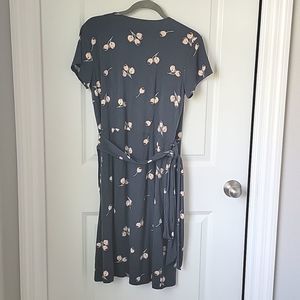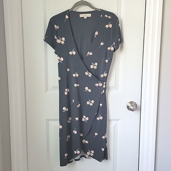 LOFT Gray with Cherries Short Sleeve Wrap Dress with Belt - Size 2