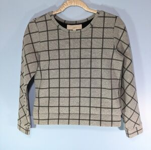 LOFT Gray/Black Plaid Scuba Sweatshirt/ Top