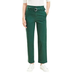 LOFT Green Belted Straight Leg Pants in Twill 4P