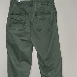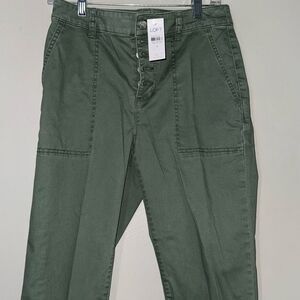 These fatigue green denim jeans from LOFT feature a tailored fit, offering a versatile style suitable for both casual and semi-formal occasions. Crafted from a comfortable cotton blend, they provide a polished look with a relaxed feel.