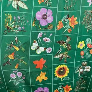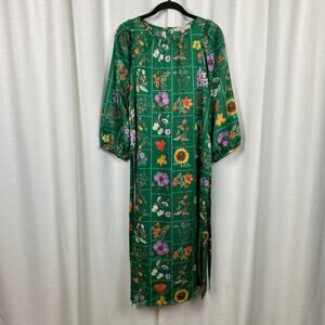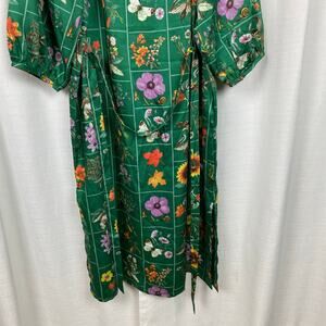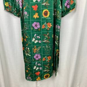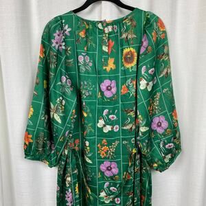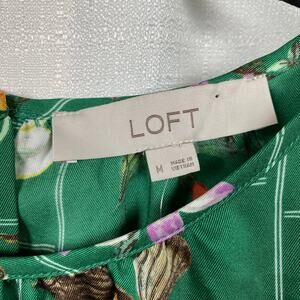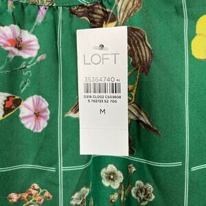 LOFT Green Floral Bird Butterfly Garden Puff Sleeve Shift Midi Dress Sz.M NWT