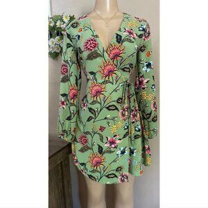 LOFT Green Floral Long Sleeve Genuine Wrap Dress