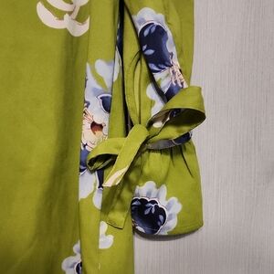 LOFT Green Floral Mini Dress with Tie Sleeves