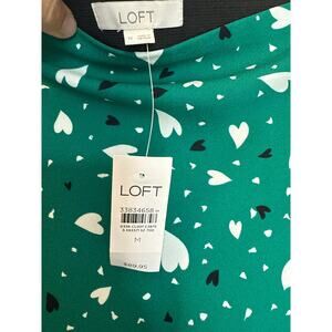 LOFT Green Heart Print pull-on midi skirt, size Medium — new with tags, perfect condition.