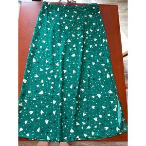 LOFT Green Heart Print Pull-On Midi Skirt Size M Elastic Waist NWT