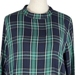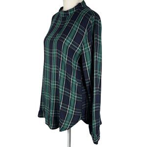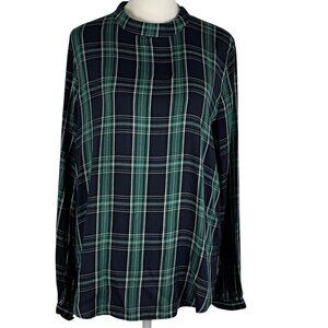 LOFT Green & Navy Blue Plaid Mock Neck Blouse – Size Small