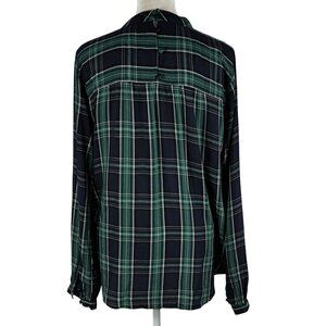 LOFT Green & Navy Blue Plaid Blouse Size Small