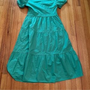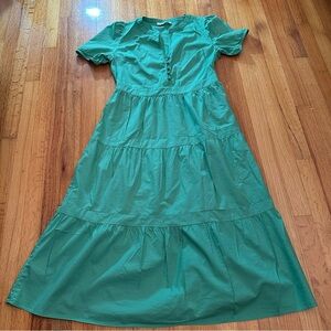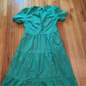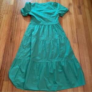 LOFT Green Puff Sleeve Tiered Midi Dress Size 10 Boho Peasant Flowy (j5)