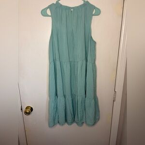 This elegant green blouse from LOFT features a sleeveless design with a smocked style, offering a chic and breezy look. The lightweight fabric ensures comfort and ease, making it a perfect addition to your wardrobe.