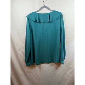 LOFT Green V-Neck Long Sleeve Blouse Size Large