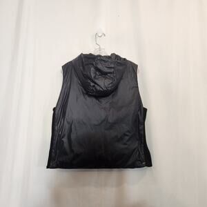 LOFT Grey Black Hooded Puffer Vest Knit Lightweight Rose Gold Hardware FLAWED