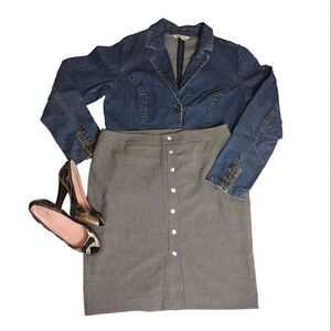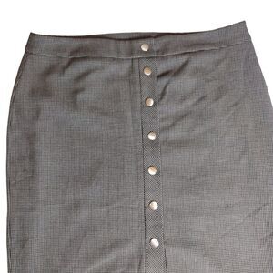 LOFT Grey Black Houndstooth Button Front Lined Straight Skirt Size 12