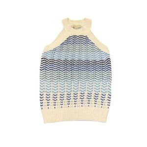 LOFT Halter Knit Sweater Tank Top White Blue Sleeveless XS Nautical Striped