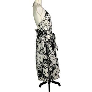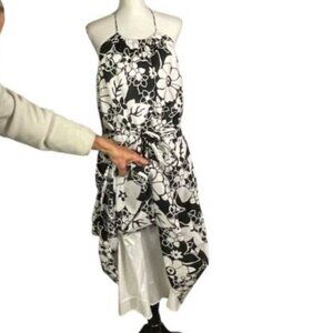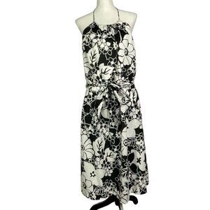 LOFT Halter dress, Black & White, size 16, 100% Cotton, lined, ties in front