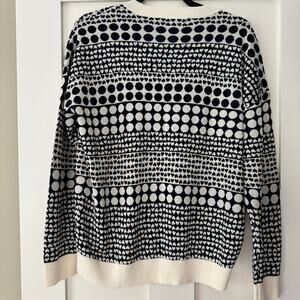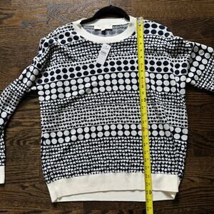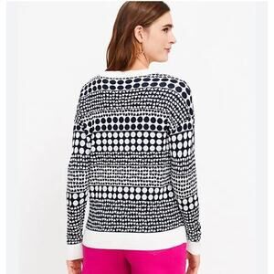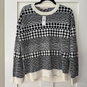 LOFT Heart Dot Sweater Large Long Sleeve Whisper White Dark Blue Crew Neck NEW
