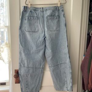 Loft barrel jeans in soft light blue. Perfect for casual wear. Comfortable and stylish. True to size. I needed to go up a size for the desired fit and missed the return window. New without tags.