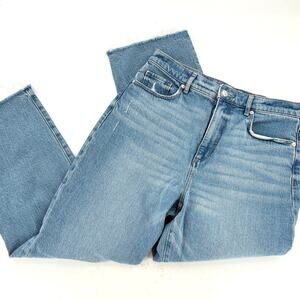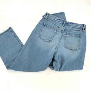 LOFT High Rise Straight Leg Jeans 29 8 Classic Mid Wash Raw Hem