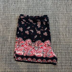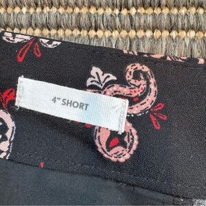These high-waisted shorts from LOFT feature a striking combination of black and red hues, adorned with delicate floral patterns. The elastic waistband ensures a comfortable fit, while the vibrant border adds a touch of elegance to any casual ensemble.