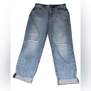 NWT! Trendy blue boyfriend jeans from LOFT with ripped knees and light distress. Ideal for everyday relaxed style. Size 6 PETITE! Shown cuffed and uncuffed. These would be super cute with a classic white tee or bodysuit and a complementing denim jacket.