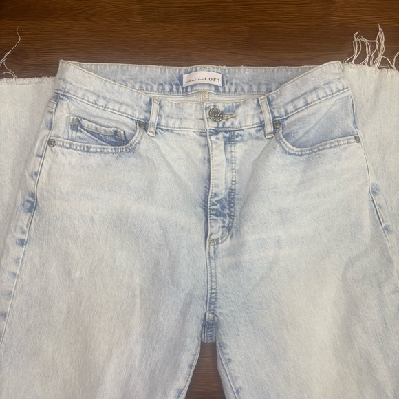 LOFT High Waist Kick Crop Distressed Hem Jeans