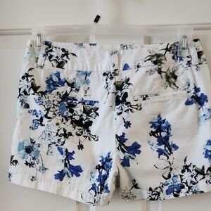 LOFT High Waist White and Blue Floral Shorts
