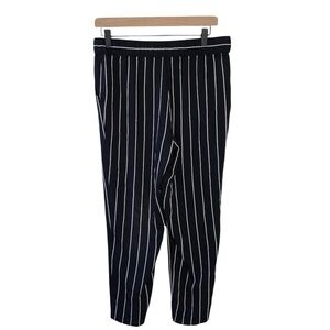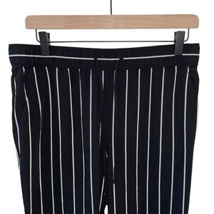 LOFT High Waisted Pants Flowy Black White Striped Waist Tie Small