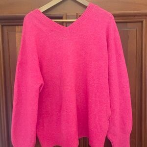 Super cute LOFT sequin star v neck hot pink sweater. Really soft wool blend sweater perfect for those special occasions or just a casual day shopping.
