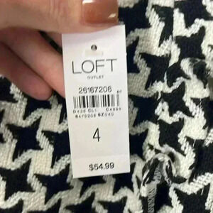 LOFT Houndstooth A-Line Ruffle Lined Skirt Size 4 Black & Cream NWT