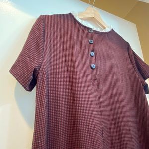Adorable dress, perfect for work! Only tried on once, but tags were removed. Stretchy but also holds its form in the best ways. Plus it has pockets! The pattern is a small houndstooth in dark red and black.